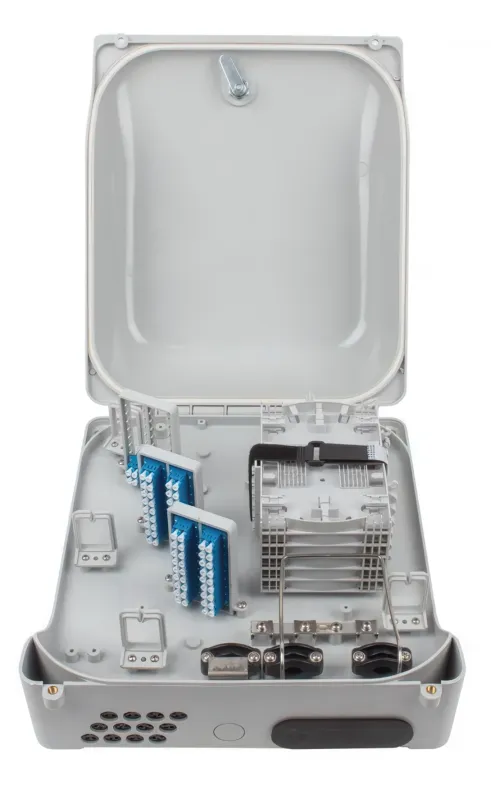 MOTB-X48A — це зовнішній оптичний розподільчий та оконечний бокс (termination box), призначений для організації, захисту та комутації волоконно-оптичних ліній зв’язку в мережах FTTH, телеком-вузлах і розподільчих шафах будівель. Він забезпечує зручне підключення магістральних кабелів, розподіл на абонентські лінії та розміщення спліттерів.