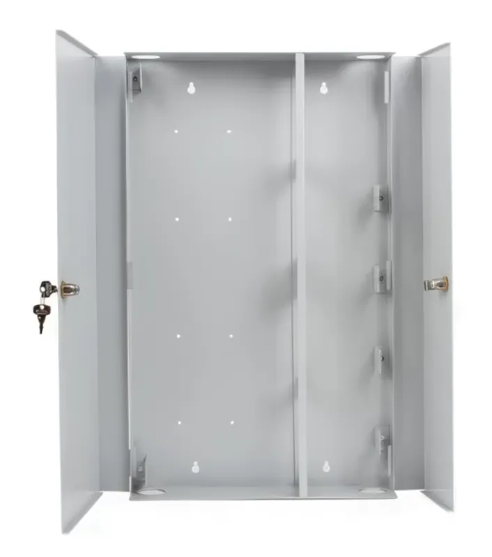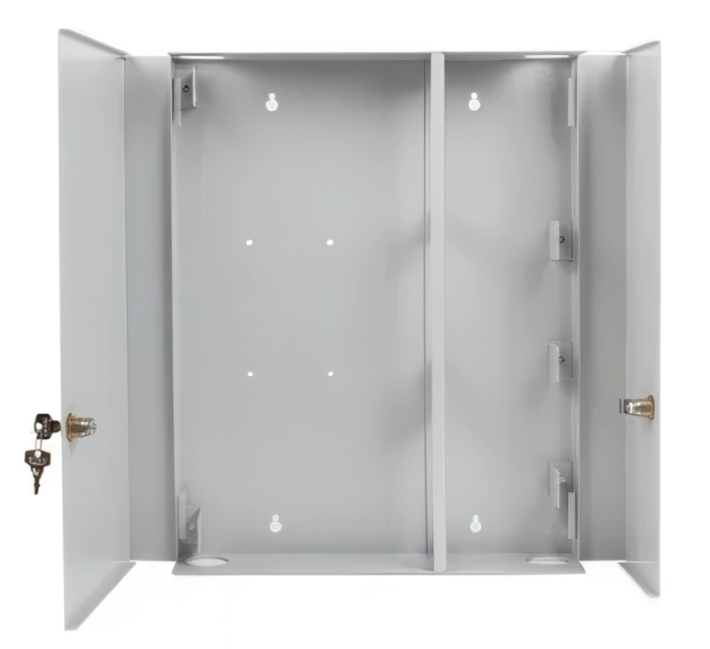 Конструкція з подвійними дверцятами забезпечує розділений доступ для монтажника та користувача, що підвищує безпеку та зручність обслуговування. Обидві двері повністю знімаються, що спрощує монтаж і подальшу реконфігурацію мережі.